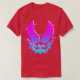 I give wanted to give this a 4 instead of a 5 because these Basic DARK T0shirts run unexpectedly SLIM or Narrow. Which is great if you do not have a potbelly, but I have a paunch. It isn't the shirt's fault that I've got a beer belly. The design and shirt itself is a quality cotton shirt. The color is more of a deep purple, but still a very pretty color. The Basic DARK T-shirts run a bit SLIMMER than the Basic Ts. The neck is a fraction narrower (or seems to be narrower) also. I'm a paunchy middle-aged woman and my neck is 12 inches (31cm) thick and the neckline fell about the same as in the photo of the man, and I had the desire to tug it a bit. So if you're a thick necked man or like loose shirts, be aware these are slimmer shirts. Once I get rid of my lockdown paunch it'll look great. The shirt washed well in cold water with no apparent bleeding. We don't have a dryer, so it hung dry. Did not shrink. Love the colors and the design. The design looks smaller on my shirt than it does on the model on-line. But still, it looks good on the shirt. The printing looks as it does on the model, just the size seems fractionally smaller. Washed garment in cold water, hung dry and design appeared unaffected.