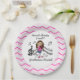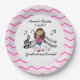 A stick figure girl violin player in a pink dress on pink chevron design paper plates. Customer request