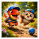 Description brighten up your nursery or classroom with this high-quality Rex and hoot playtime poster this charming piece of wall art feature is our favourite duo Rex the dinosaur and hoot the owl bursting with energy as they play outdoors with a blue ball dressed in their signature blue caps and a colourful striped shirt for Rex. The characters are captured in a moment of pure friendship and fun