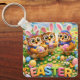 Carry a little bit of Easter fun everywhere you go with this charming keychain from the Rex and hoot series featuring our adorable owl friends dressed as bunnies surrounded by colourful eggs and flowers