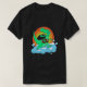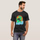 I give wanted to give this a 4 instead of a 5 because these Basic DARK T0shirts run unexpectedly SLIM or Narrow. Which is great if you do not have a potbelly, but I have a paunch. It isn't the shirt's fault that I've got a beer belly. The design and shirt itself is a quality cotton shirt. The color is more of a deep purple, but still a very pretty color. The Basic DARK T-shirts run a bit SLIMMER than the Basic Ts. The neck is a fraction narrower (or seems to be narrower) also. I'm a paunchy middle-aged woman and my neck is 12 inches (31cm) thick and the neckline fell about the same as in the photo of the man, and I had the desire to tug it a bit. So if you're a thick necked man or like loose shirts, be aware these are slimmer shirts. Once I get rid of my lockdown paunch it'll look great. The shirt washed well in cold water with no apparent bleeding. We don't have a dryer, so it hung dry. Did not shrink. Love the colors and the design. The design looks smaller on my shirt than it does on the model on-line. But still, it looks good on the shirt. The printing looks as it does on the model, just the size seems fractionally smaller. Washed garment in cold water, hung dry and design appeared unaffected.