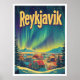 Reykjavik Iceland Art Vintage Travel Illustration Poster