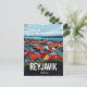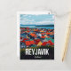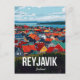 Bring the distinctive charm of the far north home with this eye-catching vintage-style travel postcard of Reykjavik, Iceland. The artwork features a stunning, elevated view of the capital city's iconic rooftops, rendered in brilliant and varied colors, set against the backdrop of the Atlantic Ocean and mountains. This design is perfect for Nordic travel enthusiasts, fans of striking graphic art, lovers of the bright and unique houses of Reykjavik, or anyone looking for a unique souvenir. A cheerful and stylish tribute to the world's most northern capital.