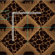 Alternating squares set on a diagonal of a deep chocolate brown rhinoceros silhouette set in a medium brown faux grassy texture diamond shape bordered in pattern of tall blades of grass. Alternating pattern with a dark-chocolate brown (almost black) and tan giraffe animal print background.