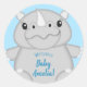 Rhino Baby Shower Safari Blue Classic Round Sticker