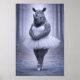 A poetic anthropomorphic rhinoceros dressed as a delicate ballerina, set within a mist-covered forest. This artwork explores the contrast between strength and fragility, combining surreal elegance with a calm monochrome aesthetic.
