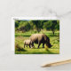Postcard featuring mother rhino and baby rhino in the wild in Zimbabwe.