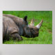 The majestic looking Rhino is having a rest in the grass. Showing off his beautiful horns.