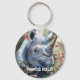 An original oil painting by Brenda Thour of a portrait of a rhinoceros with an abstract leafy background in greens and browns. Photo reference by Dr. Thomas Trainer. Copyright by Brenda Thour 2008.