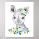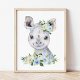 Rhino, Safari, Jungle, Blue Flowers, Boy Nursery Poster