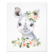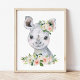 Rhino, Safari, Jungle, Pink Flowers, Girl Nursery Photo Print