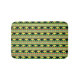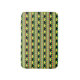 Black and yellow rhinos march across green stripes alternating with loosely “woven” stripes in African colours of red, black and green with yellow accents on this bath mat.