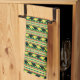 Black and yellow rhinos march across green stripes alternating with loosely “woven” stripes in African colours of red, black and green with yellow accents.