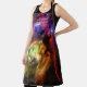 An apron with fun text you can easily change. As designed it says "out of this world chef!". It's on top of an image of the Rho Ophiuchi Cloud Complex taken by the Near-Infrared Camera (NIRCam) of NASA’s James Webb Space Telescope. The Rho Ophiuchi Cloud Complex is the closest star-forming region to Earth. It's a relatively small, quiet stellar nursery, but you’d never know it from Webb’s chaotic close-up. Jets bursting from young stars crisscross the image, impacting the surrounding interstellar gas and lighting up molecular hydrogen, shown in red.
