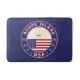 Badge of Rhode Island with flag of Rhode Island and flag of USA colours, rounded shape.