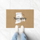 Modern farmhouse personalised doormat with your family name inside your state map. Faux burlap canvas texture background. Click Customise It to add your own text and images and create a unique one of a kind design!