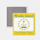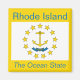 An authentic premium quality image of the flag of Rhode Island set between the state name and nickname over a flag-colour background.