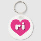 This keychain features a vibrant hot pink heart containing the bold, rounded, white lower case letters ri, a playful version of the abbreviation for Rhode Island, the ocean state.