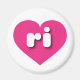 This magnet features a vibrant hot pink heart containing the bold, rounded, white lower case letters ri, a playful version of the abbreviation for Rhode Island, the ocean state.