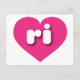 This postcard features a vibrant hot pink heart containing the bold, rounded, white lower case letters ri, a playful version of the abbreviation for Rhode Island, the ocean state.