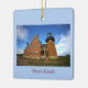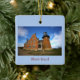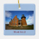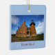 at christmass as a hanging decration for the chritmass tree.. its white porcline or cramic but very well made with added photo on one side.. also has a lovley red bag to keep it in.. execlent printed text in bold and black stands out well aganst the blue background of the photo.