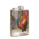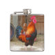 Rhode Island Red Rooster Crowing in Barnyard Hip Flask