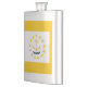 The product is a good size and came exactly as it was pictured.  The lid is not attached to the flask, which could be dangerous on drunken nights... The print came out surprisingly well and looks very sharp.  Would definitely recommend.
