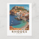 Rhodes Greece Illustration Travel Art Vintage Postcard