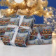 Celebrate the holiday season with this magnificent Rhodesian Ridgeback Christmas design! This distinguished scene features three noble, sleek-coated Rhodesian Ridgebacks sitting alertly in the back of a classic red pickup truck, nestled in a picturesque snowy winter forest. The vintage truck is adorned with a festive Christmas wreath, twinkling with red and gold ornaments and warm, glowing lights. Gentle snowflakes fall around the scene, and a decorated Christmas tree in the background adds to the magical winter wonderland. This design perfectly captures the joyful spirit of the holidays, making it a wonderful Christmas gift for any Rhodesian Ridgeback owner, dog lover, or enthusiast of festive and impressive dog breeds.