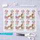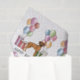 Destei's original cartoon illustration of a cute Rhodesian Ridgeback breed dog. The dog is placed in a colourful birthday setting with pastel colour birthday balloons and gifts. The pastel colours include pink, green, blue, red, orange and purple. The background has a playful pastel colour polka dot pattern. There is also a personalizable text area that now reads: "Happy Birthday!". The design is placed six times creating a small pattern.