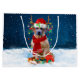 A dog in snow with Christmas gifts and snow fall is a perfect gift idea for someone who love dogs.