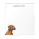 Image of a red Rhodesian Ridgeback breed type dog placed in the lower left corner, set on solid white. Personalize with your name or message in black minimalist font.