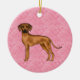 Rhodesian Ridgeback Dog On Pink Hearts With Name Ceramic Tree Decoration