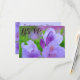 A beautiful nature photograph featuring delicate blooming rhododendron flower petals covered in raindrops and backlit by soft sunlight. Colours appearing in this original fine art photo include purple, lavender, violet, orchid, pink, fuchsia, red, green. Customise text on back.