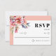 Rhododendron branch and peach pink flowers wedding RSVP card