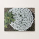This puzzle presents a bit of a challenge. The large rhododendron leaves and the rocks give some guidance, then comes the small white candy tufts flowers. I took this photo from my flower garden. Enjoy. Thank you for shopping CherylsArtPhotos on Zazzle.