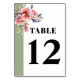 Rhododendron branch with peach pink flowers wedding table number. The left side of this card is adorned with a sage green border, adding a touch of elegance. In the upper left corner, a graceful rhododendron branch in watercolor style, embellished with peach-pink blossoms and greenery creates a captivating focal point. The text on the card is presented in a bold and eye-catching typography, further enhancing the overall elegance of this design.