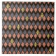 Ceramic Tile with geometric and floral seamless pattern. Silhouette flowers and coral pink coloured, grey and golden rhombuses on black background Ceramic Tile. Brown and Coral Pink Collection.