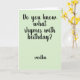This card is great fun and good quality. I loved the humour inside and on the back. There is the opportunity to change the orientation of this card from landscape to portrait, which I did. It is relatively straightforward to amend the typeface to fit the new orientation. It was well packaged with no plastic. The printing on this card is excellent.