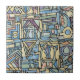 Rhythm In Blue-Funky Ceramic Tile With Hand Painted Modern Geometric Watercolor Art