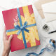 A striking, sunny yellow ribbon and bow take centre stage on this luxurious wrapping paper, creating a sense of anticipation and excitement. The elegant, metallic gold accents add a touch of opulence to your present, making it as much about the presentation as it is about the gift itself.