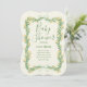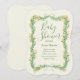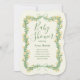 Gorgeous watercolor ribbons, bows, greenery and flowers frame this sweet baby shower invitation.