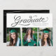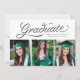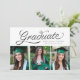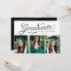 With a stylish script "graduate" in a trendy ribbon script, this three photo graduation announcement and graduation invitation is the perfect way to celebrate your senior. This black and white card by Lea Delaveris Design features three photos on the front along with room for customisable text including name, school, year and more. The back is a coordinating black framed with white stripes and has room for graduation party invitation details. This combination graduation announcement and invitation is also available as a digital download and can be done in other colours as well. Please message if you're looking for another colour you don't see.