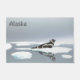 A digital painting of a brown and white Ribbon Seal resting on an ice floe on a very grey and dreary day. Customisable text reading "Alaska" also appears. The ribbon seal (Histriophoca fasciata) is a medium-sized pinniped from the true seal family (Phocidae). They are among the most striking and easily recognisable. They can be identified by the distinctive light-coloured bands or “ribbons” that encircle their neck, each foreflipper, and hips. The contrast is particularly strong with the males,having a dark brown to black pelage with white ribbons, females range from silvery-grey to dark brown with paler ribbons. Newborn ribbon seal pups have white natal fur. After moulting their natal fur, their colour changes to blue-grey on their backs and silvery beneath; after some years some portions become darker and others brighter, and only at the age of four years does the typical design show. Ribbon seals moult their coat of hair annually, beginning in May and finishing in July, with younger individuals molting earliest. The ribbon seal has a large inflatable air sac that is connected to the trachea and extends on the right side over the ribs. It may function as a buoyancy device, for air storage during diving, or for "phonation." It is larger in males than in females. The ribbon seal can grow to about 5.2 ft long and weigh up to209 lb in both sexes. Ribbon seals alternate their foreflippers and swing their hindquarters to run across ice, rather than using the caterpillar-like movement typically used by most seals. Ribbon seals are also physiologically and anatomically adapted to make deeper dives (up to about 1950 ft (600 m)) and swim faster than other seals. They have an air sac that Ribbon seals are a seasonally ice-bound species found in the Arctic and Subarctic regions of the North Pacific Ocean, notably in the Bering Sea and Sea of Okhotsk, and adjacent parts of the Arctic Ocean, including the Chukchi Sea, eastern Siberian Sea, and western Beaufort Sea. These seals are relatively solitary, spending most of their time in the open ocean and forming loose aggregations in the pack ice during spring to give birth, nurse pups, and moult. They are very rarely seen on shorefast ice or land. This species seems to prefer moderately thick, “clean” ice floes found in the inner zone of the ice front. From late-March to early-May, ribbon seals in the Bering Sea range from the Pribilof Islands to Gulf of Anadyr, roughly along the continental shelf break, being more abundant in the northwestern ice front. As the ice recedes during May to mid-July, the seals move farther to the north where they haul out on the receding ice edge and remnant ice, occasionally in dense groups. After the ice has melted, most ribbon seals probably either migrate with the receding sea ice through the Bering Straight into the Chukchi Sea or remain pelagic in the Bering Sea during the rest of the year. Thus far, there have been only two acknowledged instances where ribbon seals have been found as far south as Seattle, Washington and even further south at Morro Bay, California. There was nothing to suggest that illness was the cause of either seals appearance at either place, as both appeared to be healthy. Ribbon seal mothers give birth to their pups far offshore in the pack ice during April to early-May. The pups double their weight during nursing and are weaned after three to four weeks. Mating likely occurs shortly after weaning, though little is known of the breeding system. Ribbon seals are known to eat a variety of fishes, cephalopods, and crustaceans; however, information about their feeding habits is limited and mostly restricted to the spring when ribbon seals are typically feeding less, as evidenced by their decreased weight and blubber thickness. Although there is little direct evidence of predation, potential predators of ribbon seals include polar bears, killer whales, sharks, and walruses. Ribbon seals are relatively unwary while hauled out and can be approached closely by boat. This behaviour suggests that ribbon seals probably do not experience much predation by polar bears, but may also make them especially susceptible to hunting by man. Siberia and Alaska Natives have hunted the ribbon seal for many generations for subsistence, and the current annual take by Alaska Natives is estimated to be less than 200 seals per year. Commercial harvests of ribbon seals were conducted by Soviet sealers in the 1960s to 1980s, during which time the Bering Sea population is thought to have declined from 80,000 or 90,000 animals to 60,000. Surveys during the early and mid-1970s put the worldwide population estimate of ribbon seals between 200,000 and 240,000, with estimates ranging between 60,000 and 100,000 in the Bering Sea. A more recent and reliable abundance estimate is not currently available. Predators of the ribbon seal include orca, the Greenland shark and polar bears. In the 1960s, the population of ribbon seals in the Bering Sea was reduced from about 120,000 to 70,000. The population size increased back to about 130,000 in 1987 after quotas were set to limit harvest to about a fourth of the number of seals hunted previously. In the latest stock assessment (2007), the National Marine Fisheries Service estimated a global population size of 240,000 ribbon seals, 90,000-100,000 of which inhabit the Bering Sea. In the Okhotsk Sea, the average number of ribbon seals was 370,000 between 1968 and 1988. The current population trend is unknown, but recent estimates suggest that no catastrophic declines have occurred in recent decades. Humans have hunted ribbon seals for generations and are still hunted today by Siberia and Alaska natives for subsistence, but the number of seals harvestedhas always been relatively small (less than 100 in Alaska). In the early 1950s, the USSR began commercially harvesting ribbon seals in the Sea of Okhotsk ; the fishery quickly intensified in the 1960s,with an average of about 13,000 to 
