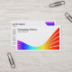 A business card template with an attractive ribbon like motif made up five bands coloured with the colours of the spectrum/rainbow. The same motif is also used on the reverse side of the card except it is arranged vertically and to the right balancing the text which is arranged on the left.Company name and business type on the front of the card. name, address telephony, email and web address are arranged on the reverse side.