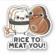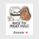 Rice To Meat You Funny Sushi Steak Pun features a cute sushi with his pal steak. Perfect pun gift for family and friends who love cute sushi steak food puns.