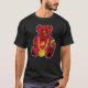 I give wanted to give this a 4 instead of a 5 because these Basic DARK T0shirts run unexpectedly SLIM or Narrow. Which is great if you do not have a potbelly, but I have a paunch. It isn't the shirt's fault that I've got a beer belly. The design and shirt itself is a quality cotton shirt. The color is more of a deep purple, but still a very pretty color. The Basic DARK T-shirts run a bit SLIMMER than the Basic Ts. The neck is a fraction narrower (or seems to be narrower) also. I'm a paunchy middle-aged woman and my neck is 12 inches (31cm) thick and the neckline fell about the same as in the photo of the man, and I had the desire to tug it a bit. So if you're a thick necked man or like loose shirts, be aware these are slimmer shirts. Once I get rid of my lockdown paunch it'll look great. The shirt washed well in cold water with no apparent bleeding. We don't have a dryer, so it hung dry. Did not shrink. Love the colors and the design. The design looks smaller on my shirt than it does on the model on-line. But still, it looks good on the shirt. The printing looks as it does on the model, just the size seems fractionally smaller. Washed garment in cold water, hung dry and design appeared unaffected.