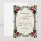 This design features a striking border of deep burgundy and rich red floral elements intertwined with dark green foliage and subtle golden accents. The overall impression is one of vintage romance and sophisticated botanical artistry. It creates a dramatic yet elegant backdrop for a special occasion.