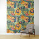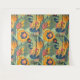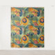 Colourful abstract, exotic flowers, rich earth tones, modern seamless pattern. Yellow, green and muted blue colours.