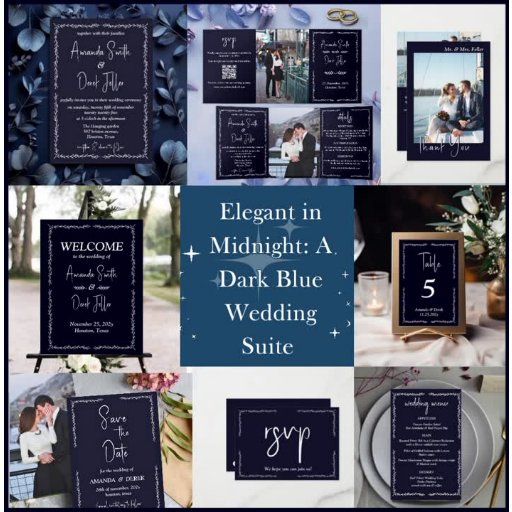 Rich Dark Blue Black Wedding Menu Card